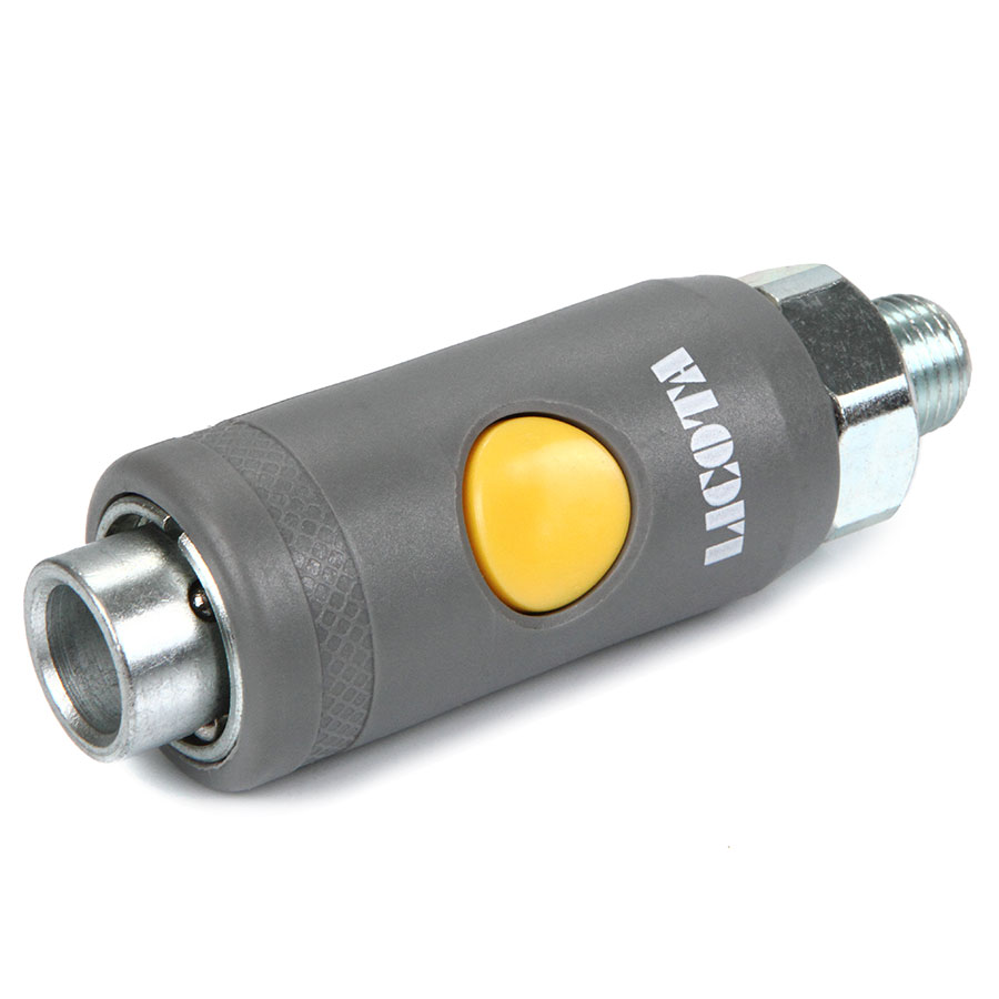 Данный быстросъем оснащен кнопкой безопасного спуска воздуха двойного действия: