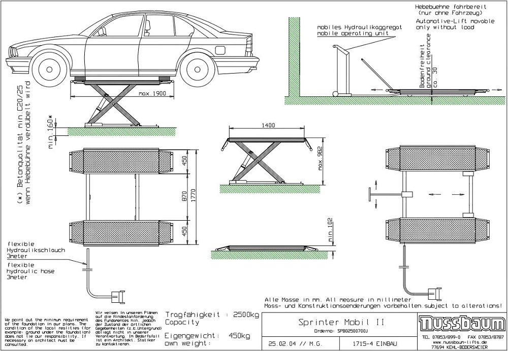 • SPRINTER Mobile безопасно поднимает легковые машины и внедорожники весом до 2,5 тонн