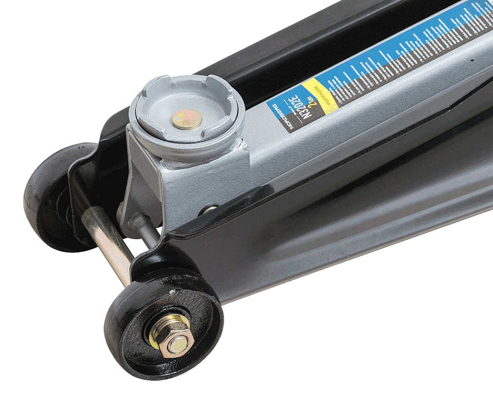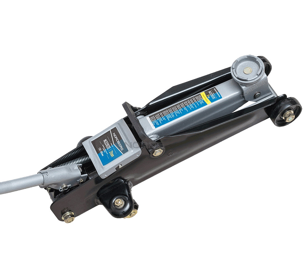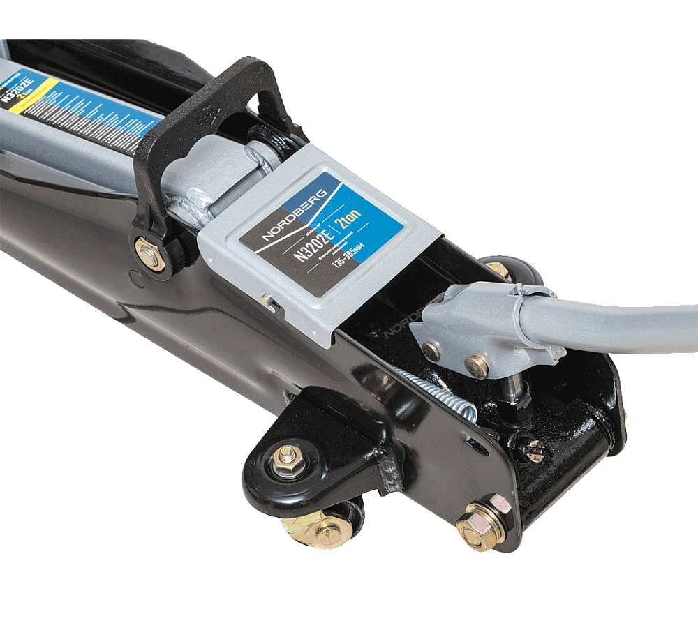 Подкатной удлиненный домкрат NORDBERG N3202EC для для автолюбителя, г/п 2т в кейсе, Н=135-385 мм.