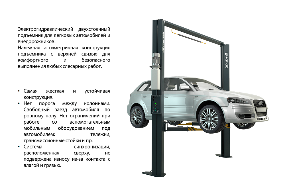 Подъемник двухстоечный, электрогидравлический, г/п 4.2 т, асимметричный