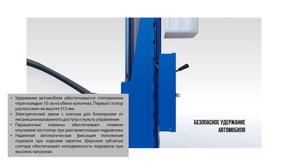 • благодаря автоматическим стопорным устройствам подхваты подвижны только в крайнем нижнем положении