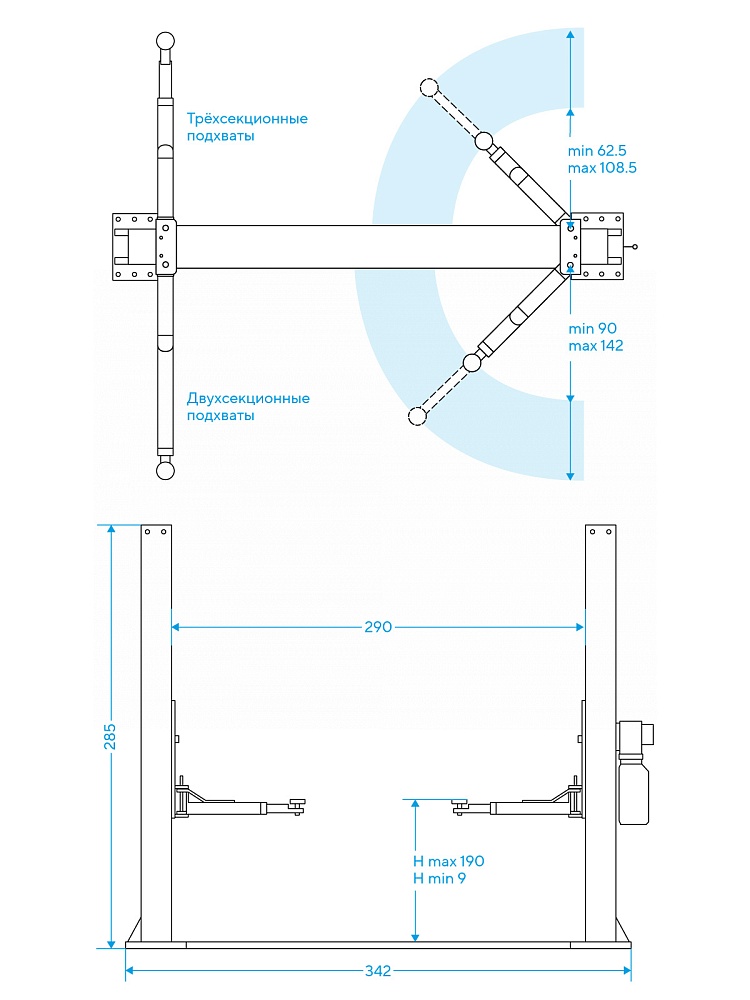 • Благодаря защитному коробу для тросов и шланга, увеличен срок эксплуатации подъемника