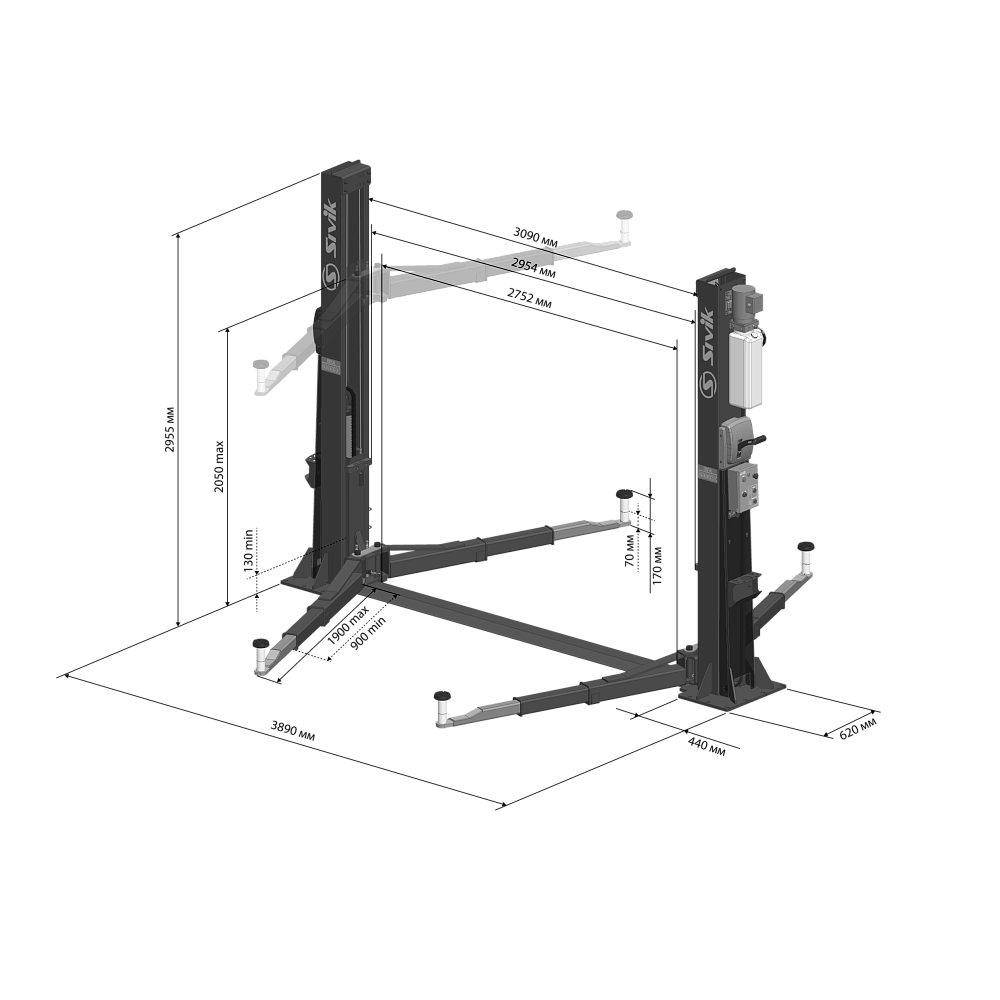 Подъемник двухстоечный, электрогидравлический, г/п 5 т