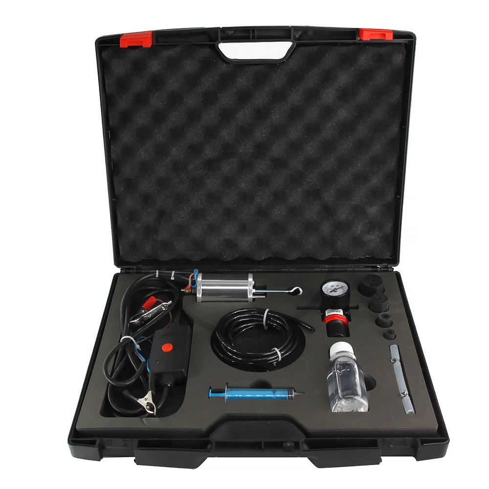 Используется для поиска утечек и негерметичности в объемных полостях узлов двигателя, системы впуска и выпуска, системы охлаждения и других систем путем подачи в них дыма и визуального обнаружения места его выхода .