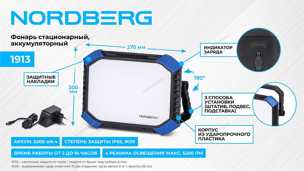 Фонарь-прожектор светодиодный, стационарный, аккумуляторный