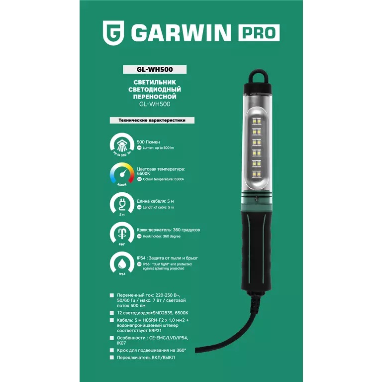 - Мощные светодиоды с приятной для глаз цветовой температурой 6500K