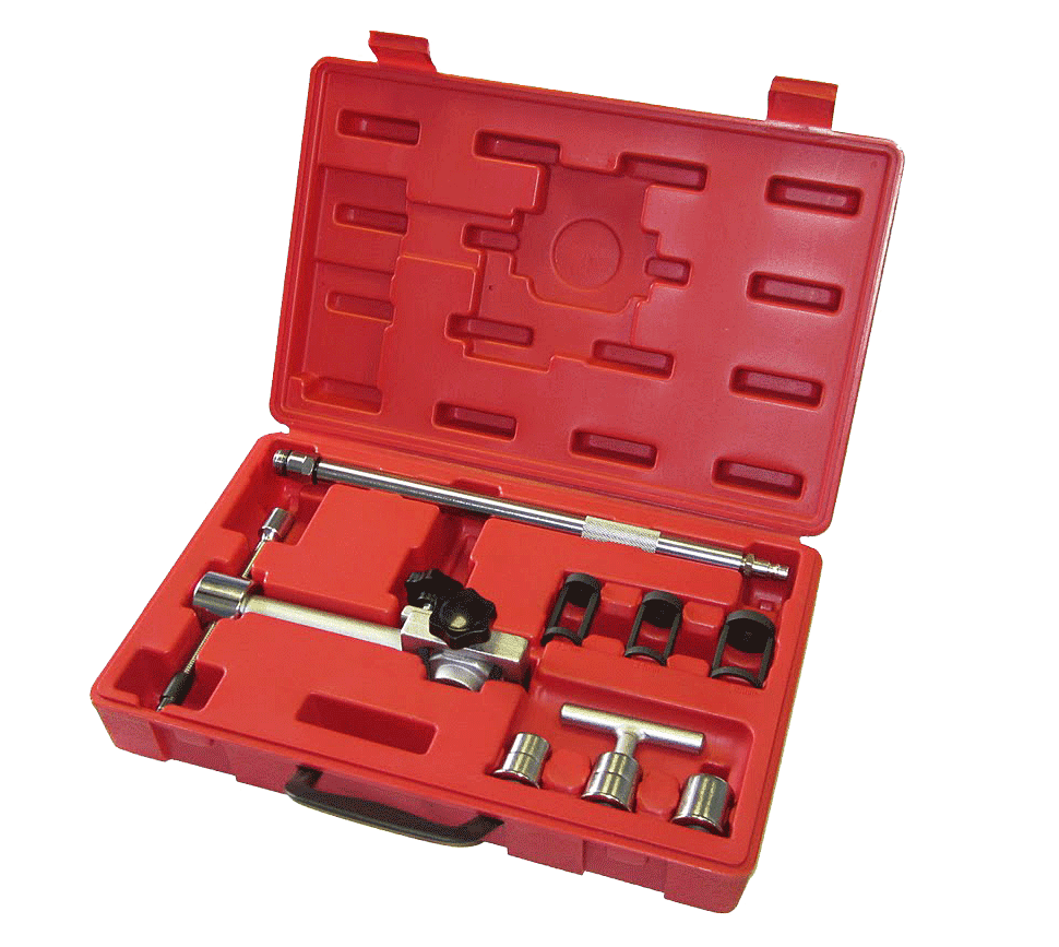 Специальное приспособление для снятия и установки сухарей (фиксаторов клапанов) для демонтажа клапанов, замены маслосъемных колпачков, а также пружин клапана. Подходит для всех двигателей с центральным расположением свечей, например, для 16-клапанных моторов.