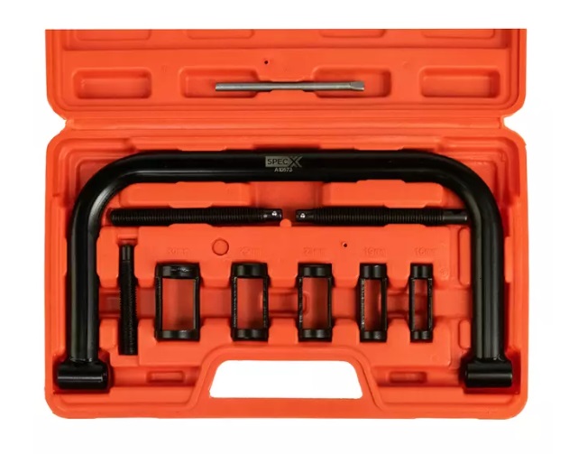 - 5 адаптеров разных размеров позволяют использовать рассухариватель с широким диапазоном двигателей и различными типоразмерами клапанов.