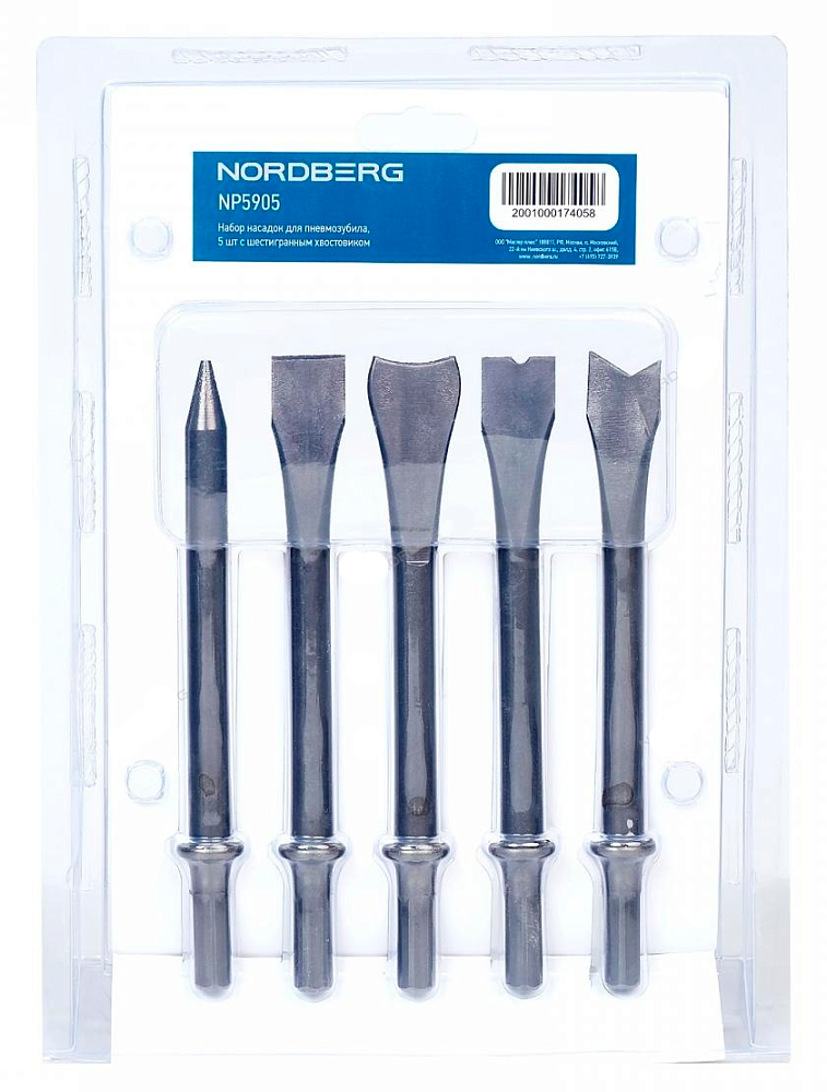 NORDBERG Набор насадок для пневмозубила NP5905, 5 шт с шестигранным хвостовиком