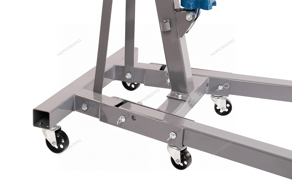 Высота нижних опор на поворотных колесах 17 см позволяет легко позиционировать кран под автомобилем, а достаточное расстояние между опорами, обеспечивает уверенную устойчивость крана во время рабочих операций.