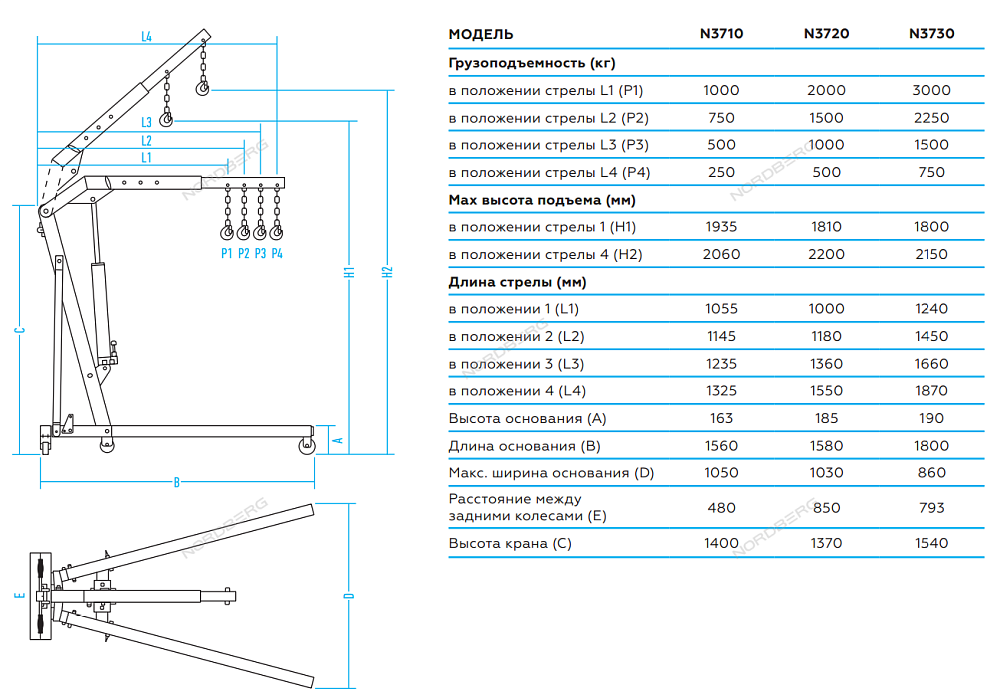 Гидравлический складной кран N3710 предназначен для подъема и перемещения автомобильных узлов, агрегатов и других грузов массой до 1 тонны.