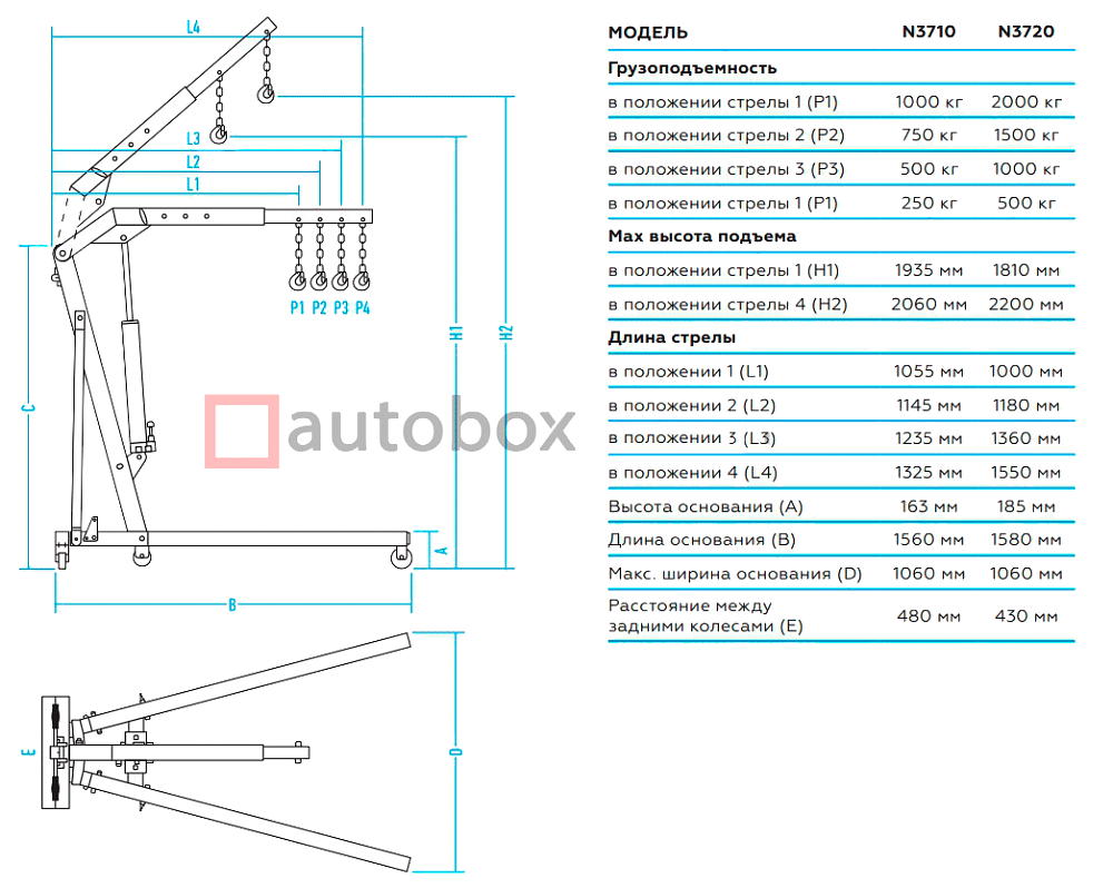 Кран гидравлический складной Nordberg N3720 для вывешивания двигателя, подъема и опускания агрегатов автомобиля.