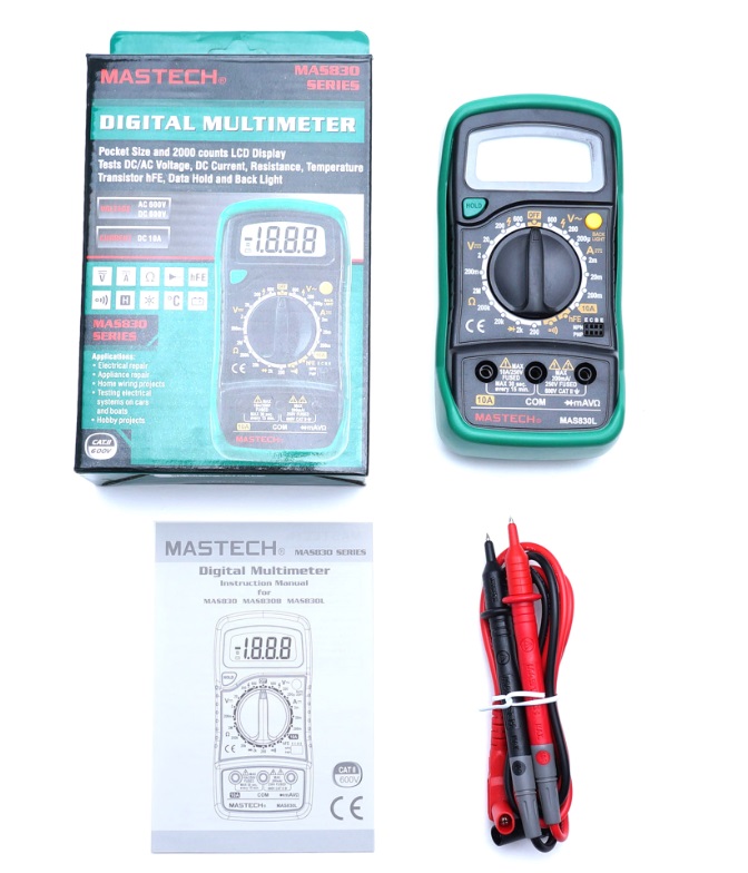 Цифровой мультиметр MAS830L предназначен для измерения силы тока, постоянного и переменного напряжения, сопротивления, определения направления тока диодов и параметров транзисторов.