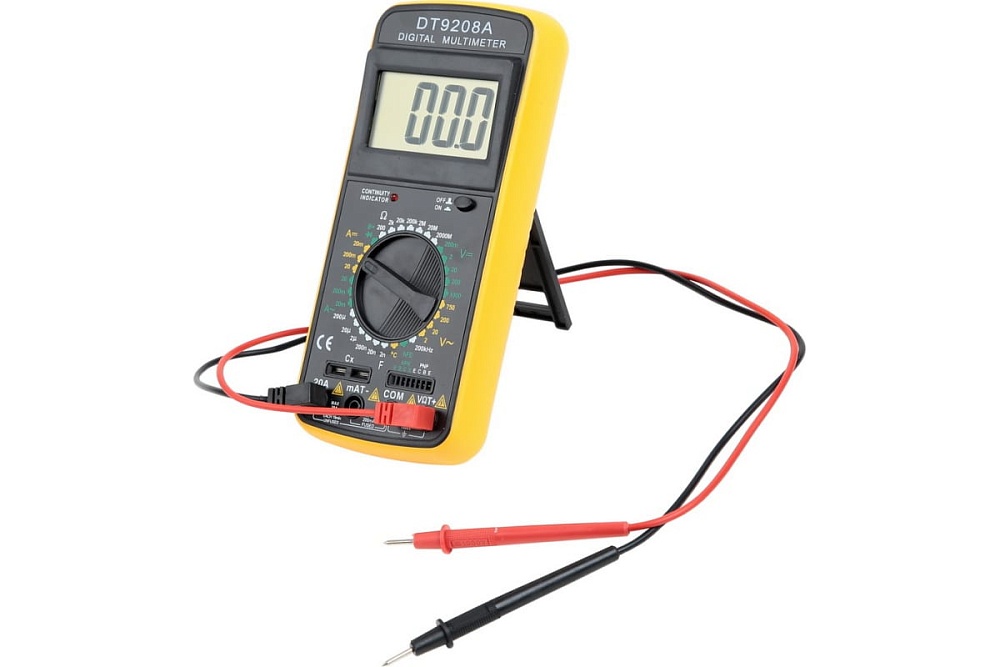 Мультиметр DT9208A предназначен для измерения тока, напряжения, сопротивления, параметров диодов и транзисторов, а также частоты и температуры. Прибор многофункционален, портативен, питается от химических источников, удобен при ремонте электрооборудования автомобиля, лабораторных измерений и т.д.