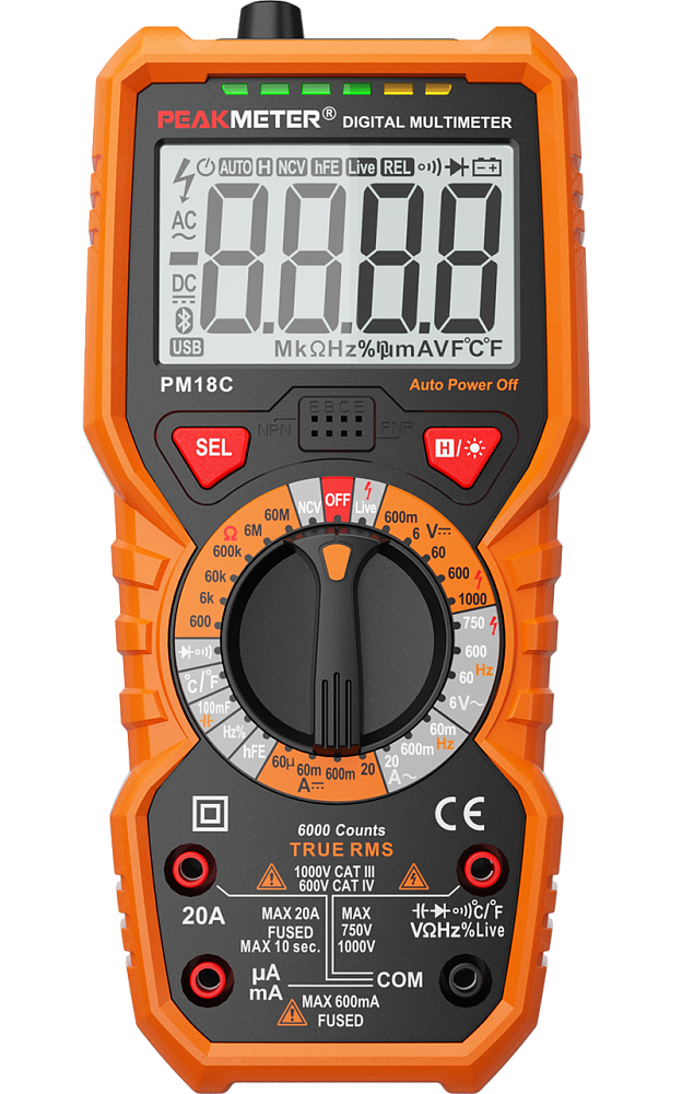 Мультиметр цифровой, профессиональный, с фонарем, NCV