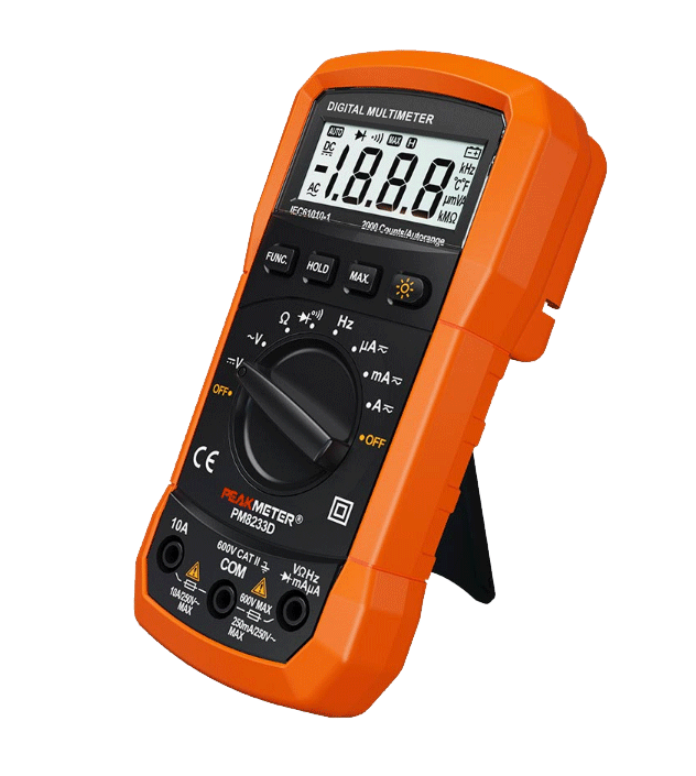 Мультиметр цифровой предназначен для измерения, максимальных значений, постоянного и переменного напряжения и силы тока, сопротивления, частоты, проверки диодов, проверки целостности цепи со звуковой индикацией.