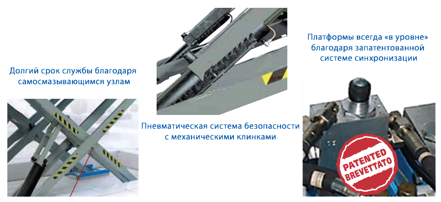 • автоматическая система контроля опускания с защитой ног механика с аудио сигналом