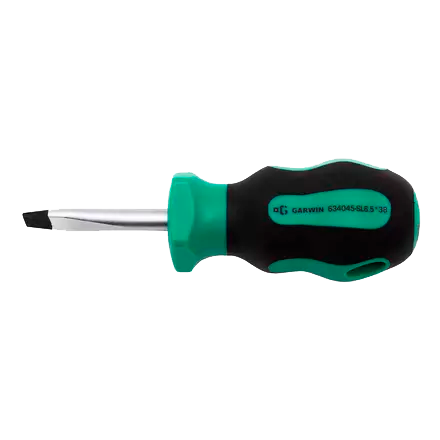 Отвертка профессиональная короткая Garwin 634045. Длина жала - 38 мм, рабочий профиль - SL (шлиц).
