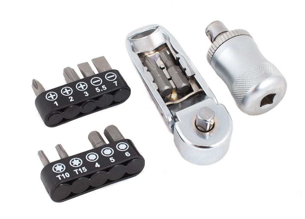 Отвертка трещоточная со сменными вставками1/4", 12 пр.