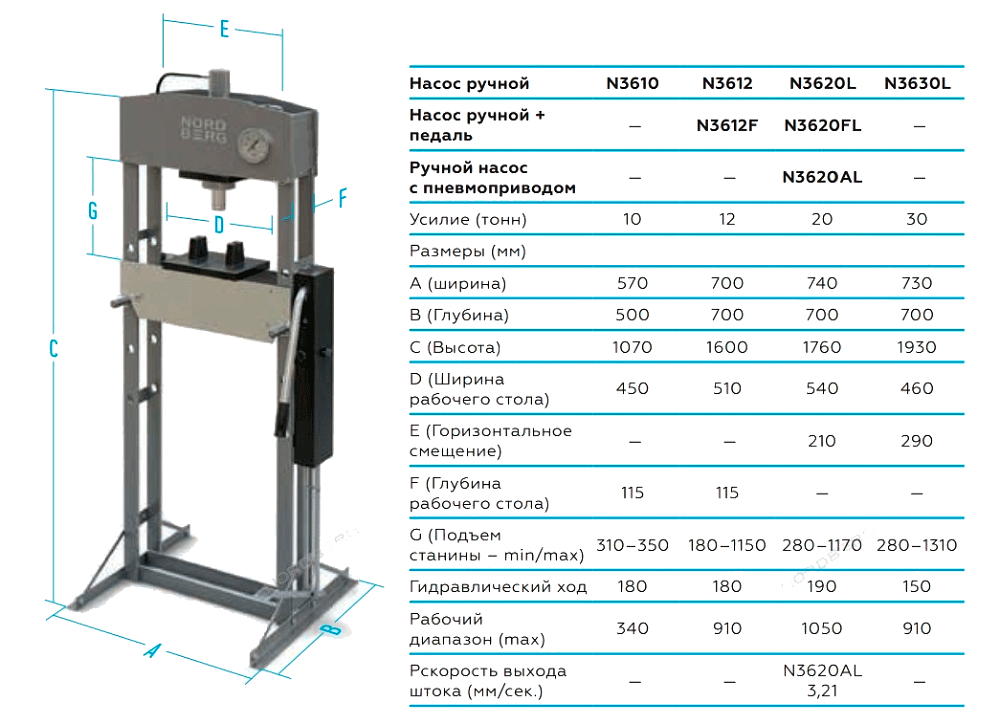 Напольный гидравлический пресс с ручным приводом NORDBERG ECO N3620AL