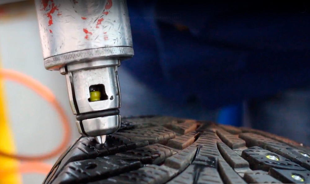 Шиповать шины можно на диске или с использованием специальной стойки.