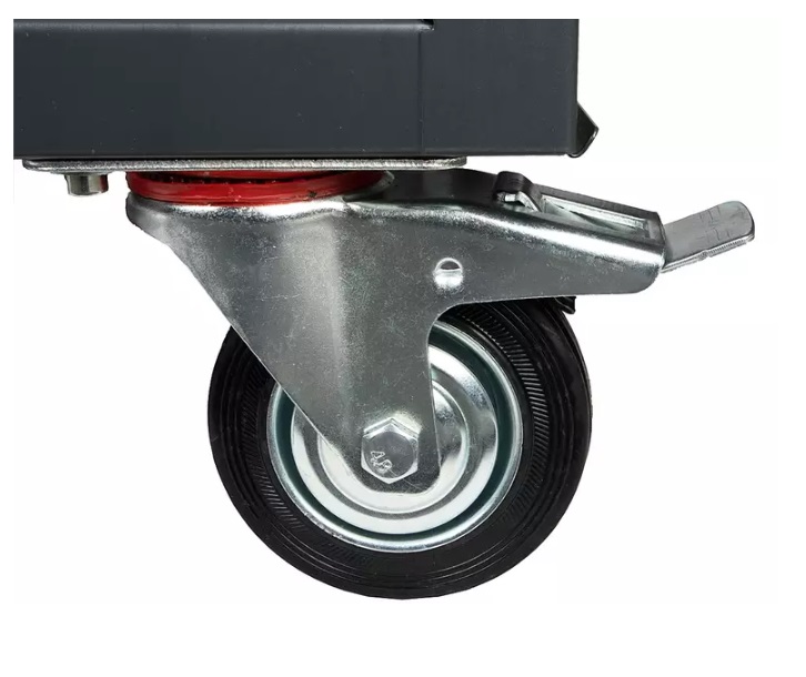 На ручки нанесен долговечный защитный шероховатый слой «soft-touch» — его наличие повышает удобство использования тележки, при этом открывать ящики сотрудники могут даже в испачканных перчатках .