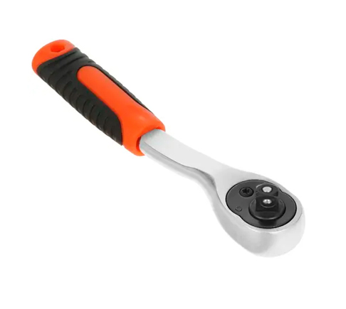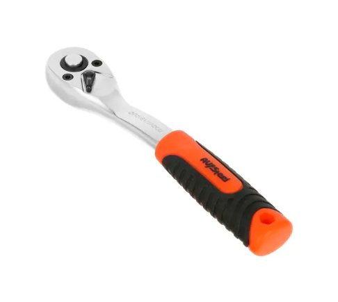Трещотка с двухкомпонентной изогнутой ручкой AV Steel AV-518623 предназначена для быстрого и эффективного закручивания или откручивания крепежа.