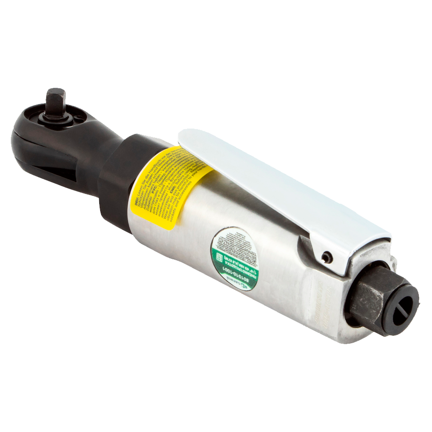 Корпус пневмотрещотки выполнен из алюминия . Малый размер - 165 мм и вес - 0, 65 кг позволяют оператору работать с крепежом в труднодоступных местах. Увеличенный до 40% крутящий момент по сравнению с аналогичными трещотками с приводным квадратом ¼ дюйма.