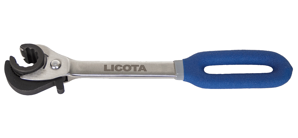 Особенность данного разрезного ключа заключается в трещоточном механизме, который позволяет работать с крепежом топливных, тормозных и других трубок не переставляя ключ.