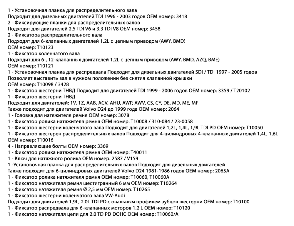 Набор для ремонта двигателей VW AUDI