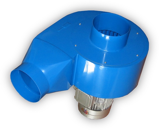Электрический вентилятор для удаления выхлопных газов. Корпус изготовлен из стали и снабжен входным и выходным фланцами. Приводится в движение 3Ф. алюминиевым электродвигателем в искробезопасном исполнении.