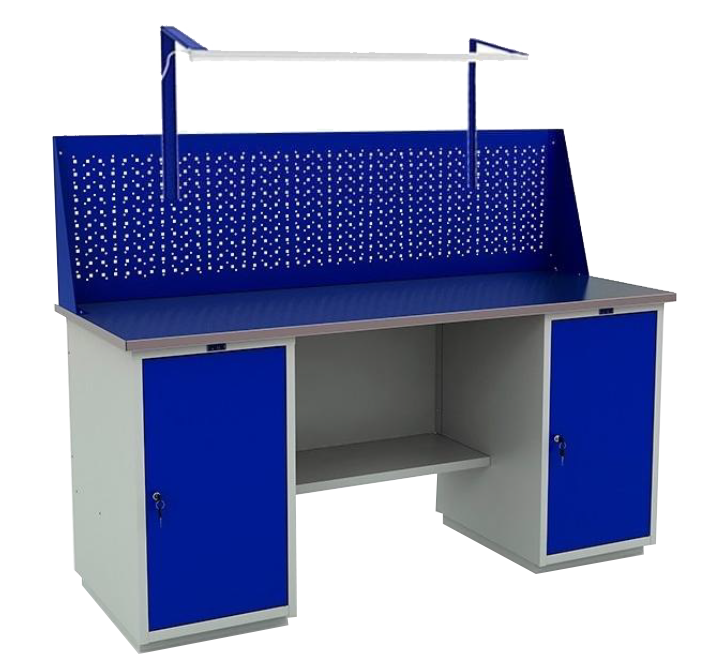 Верстак слесарный, две тумбы, перфорация, подсветка, 866х1600х700 мм
