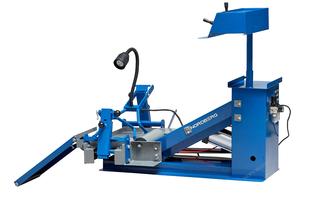Пневматический борторасширитель NORDBERG D5 для шин грузовых автомобилей с установочным столом и подъемником разработан для фиксации шины, расширения ее бортов и подъема во время ремонта.