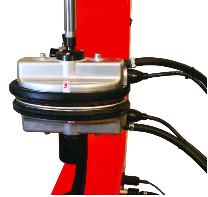 Перемещение нагревательных элементов осуществляется при помощи пневмоцилиндра, создающего максимальное давление на ремонтируемую зону более чем 900 кГ. Оба элемента снабжены электрическими и пневматическим разъемами, что обеспечивает быстрый монтаж нагревательных элементов при установке на вулканизатор покрышек большого диаметра.