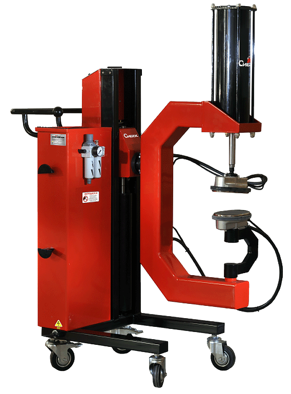 Четыре колеса облегчают лёгкий подвод вулканизатора к ремонтируемой зоне. Конструкция корпусной скобы вулканизатора допускает работату как в вертикальном, так и горизонтальном положении, а пневмолифт обеспечивают четкую установку прижимов на ремонтируемый участок покрышки без излишних физических усилий.